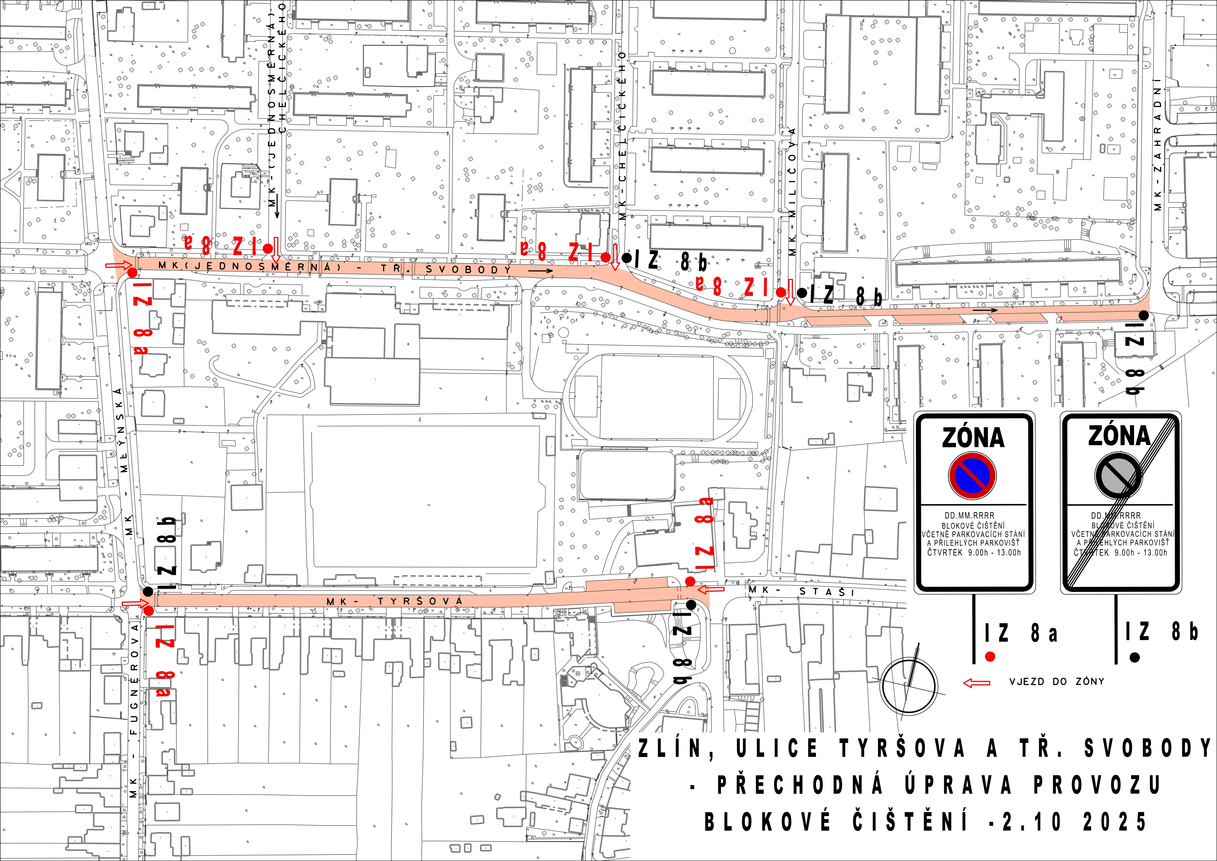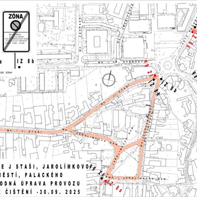 V nadcházejícím týdnu se v úterý 30. 9. zaměříme na ulice JAR. STAŠI, JAROLÍMKOVO NÁMĚSTÍ, PALACKÉHO, PARTYZÁNSKÁ, NIVY I a VRŠAVSKÁ. Ve čtvrtek 2. 10. na ulice TŘÍDA SVOBODY a TYRŠOVA. Blokové čištění bude v těchto lokalitách probíhat v čase od 9 do 13 hodin. Prosíme řidiče, aby respektovali zákaz parkování. Děkujeme za pochopení.