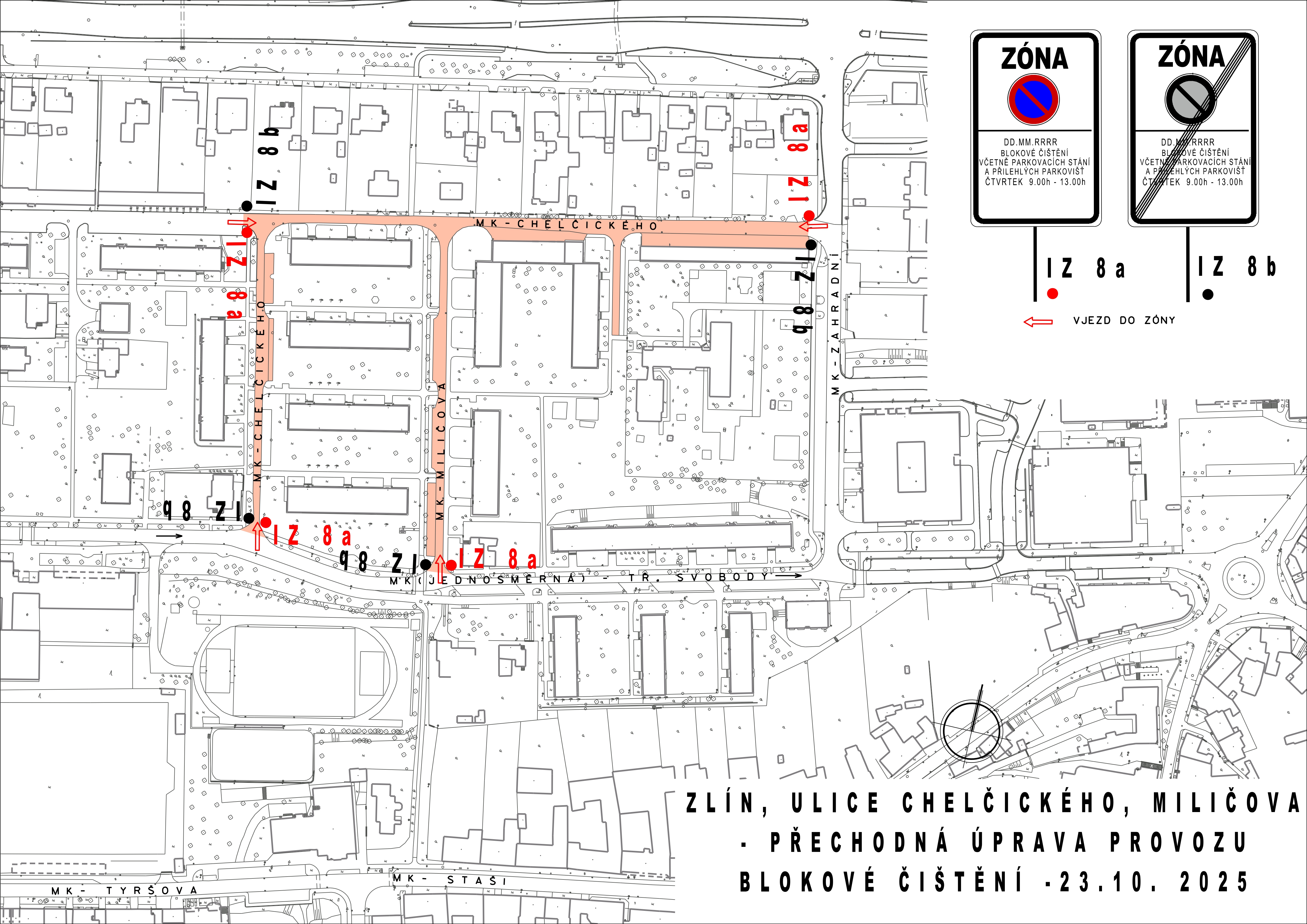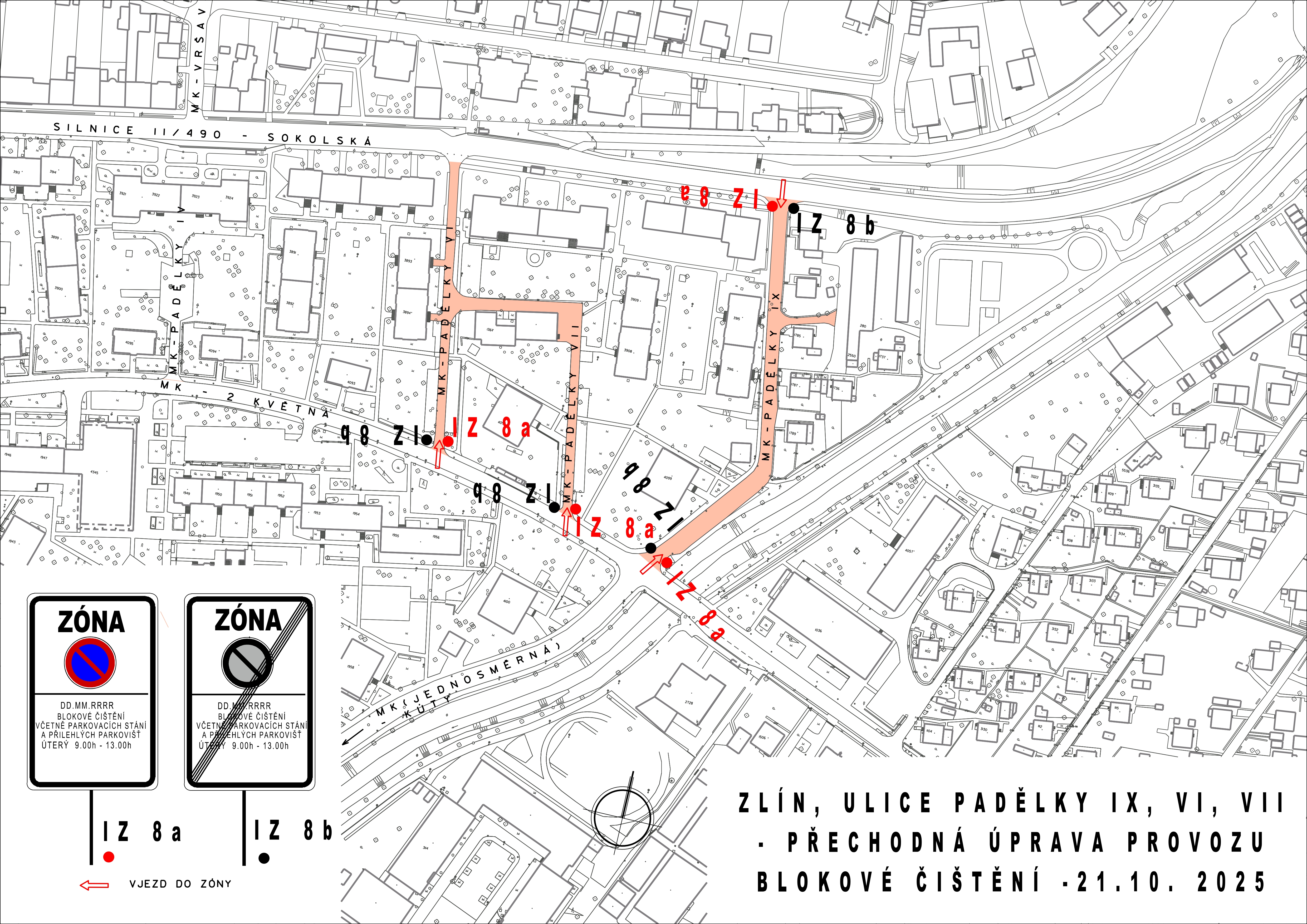 V nadcházejícím týdnu proběhne poslední letošní blokové čištění zlínských ulic. V úterý 21. 10. se zaměříme na ulice PADĚLKY IX, PADĚLKY VI a PADĚLKY VII. Ve čtvrtek 23. 10. na ulice CHELČICKÉHO a MILÍČOVA. Blokové čištění bude v těchto lokalitách probíhat v čase od 9 do 13 hodin. Prosíme řidiče, aby respektovali zákaz parkování. Děkujeme za pochopení.