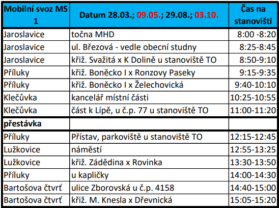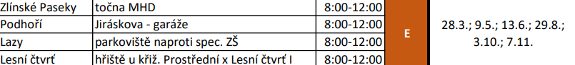 V sobotu 28. 3. bude možné odložit objemný odpad do svozového automobilu Technických služeb Zlín v Jaroslavicích, Příluku, Klečůvce, Lužkovicích a Bartošově čtvrti. Kontejner na biologicky rozložitelný odpad bude přistaven v Lesní čtvrti, Zlínských Pasekách, Lazech a na Podhoří v čase od 8 do 12 hodin.